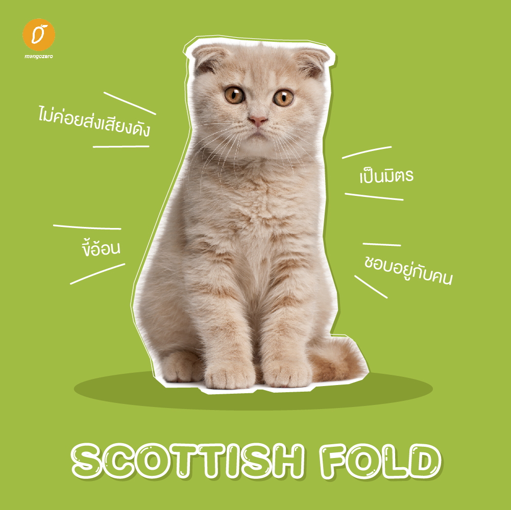 แมวพันธุ์นี้มีต้นกำเนิดจากสก็อตแลนด์ แค่เห็นหน้าน้องต่อให้ไม่ใช่ทาสแมวก็ต้องตกหลุมรัก ด้วยช่วงคอที่สั้น น้องเลยดูกลมเป็นก้อนๆ เราอาจคุ้นเคยกับน้องที่มีลักษณะหูพับ แต่จริงๆ แล้วสายพันธุ์นี้มีตั้งแต่หูตั้ง ไปจนถึงหูพับ น้องจากรูปร่างอ้วนกลมแล้วขนน้องยังสั้นและหนานุ่ม ใครได้เล่นเป็นต้องตกหลุมรักแน่นอน